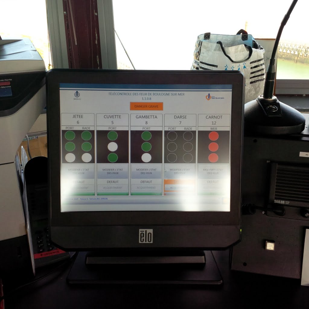 Les opérateurs peuvent contrôler et superviser l’état des feux de trafic depuis un pupitre de commandes à écran tactile simple et ergonomique, installé à la capitainerie. Ils contrôlent alors 56 feux situés fixés sur des pylônes à 5 positions stratégiques du Port.